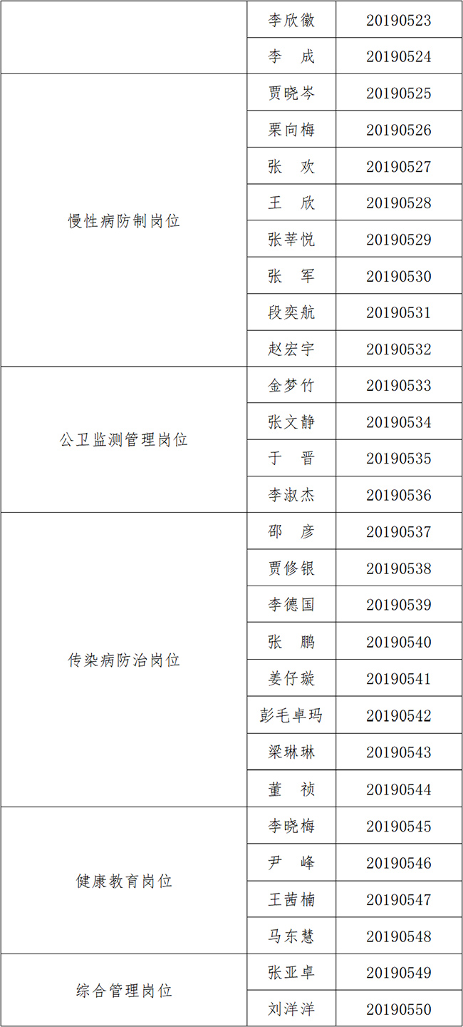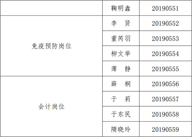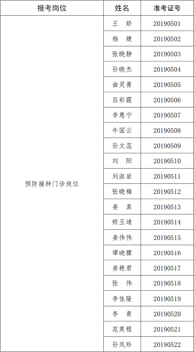 烟台高新区疾控中心和预防接种门诊及参加笔试人员公示表